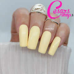 5. Shake the color polish well before use and swirl the excess polish around the inside of the bottle. To apply the color evenly, hold the brush flat and make light strokes towards the tip of the nail. Cure under UV lamp for 2min or LED lamp for 60s.