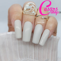 5. Shake the color polish well before use and swirl the excess polish around the inside of the bottle. To apply the color evenly, hold the brush flat and make light strokes towards the tip of the nail. Cure under UV lamp for 2min or LED lamp for 60s.