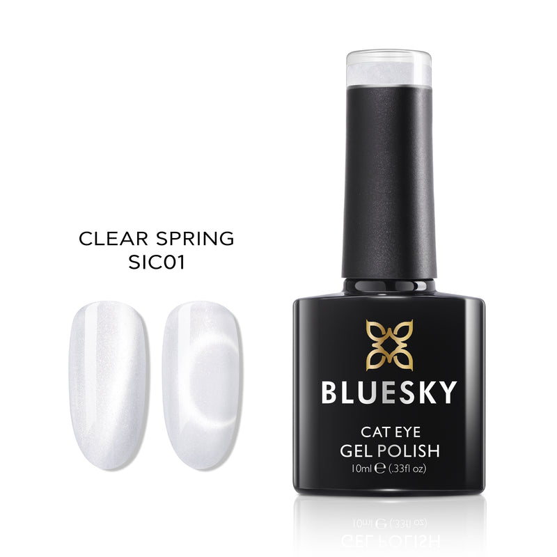 Sakura Icing -kokoelman läpikuultavia magneettigeelilakkoja voi käyttää sellaisenaan pehmeän ja utuisen lopputuloksen saavuttamiseksi tai tumman geelilakan päällä syvemmän efektin luomiseksi.