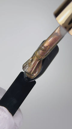 - Apply a layer of magnetic gel polish to your nail and create the desired pattern on your nail with a magnet. Hold the magnet close to your nail and avoid letting the magnet touch your nail.