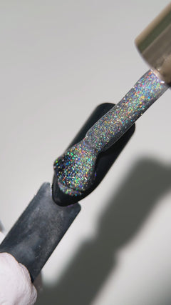 - If you wish, you can first apply a layer of black gel polish on top to enhance the magnetic polish effect. Cure in a UV lamp for 2 min or in an LED lamp for 60 s.
