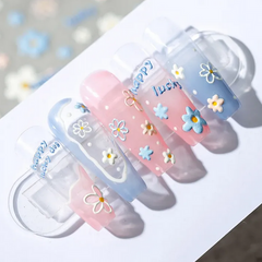 Place the sticker in the desired position and press it firmly onto the nail. - Apply a layer of gel top coat to the nail and cure with a UV lamp for 2 minutes or an LED lamp for 60 seconds.