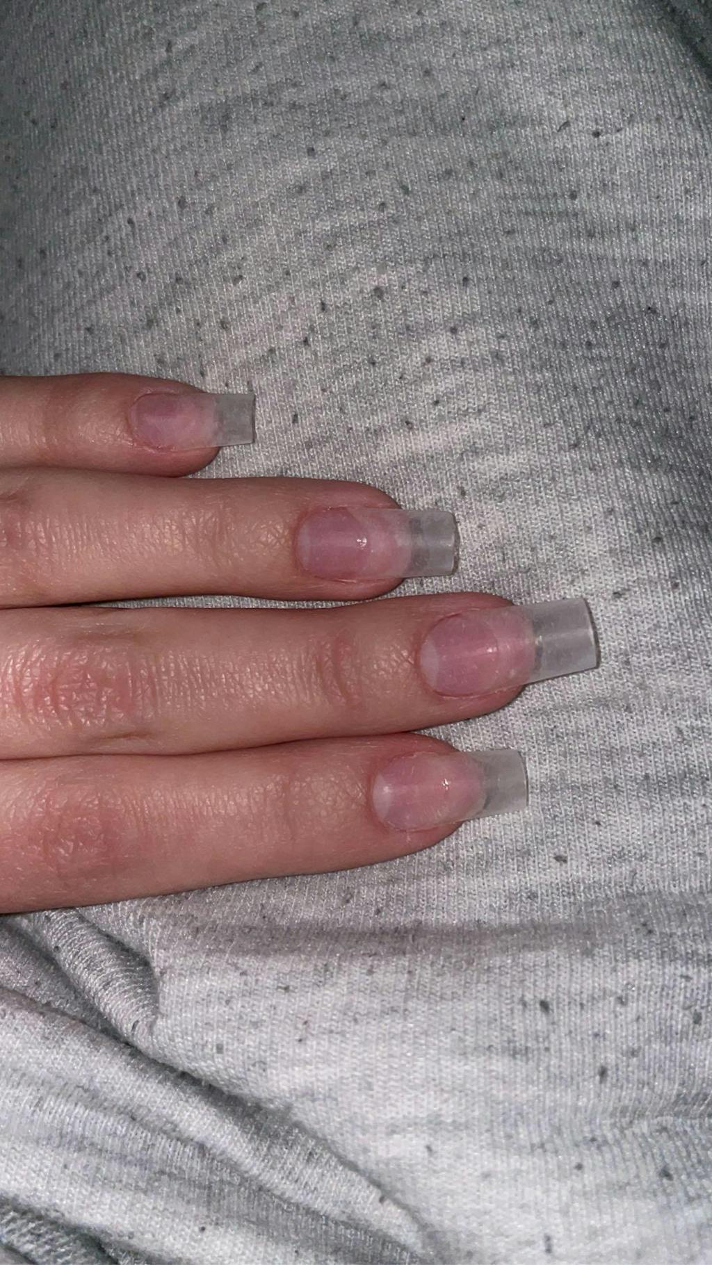 Long, square-shaped nail tips.