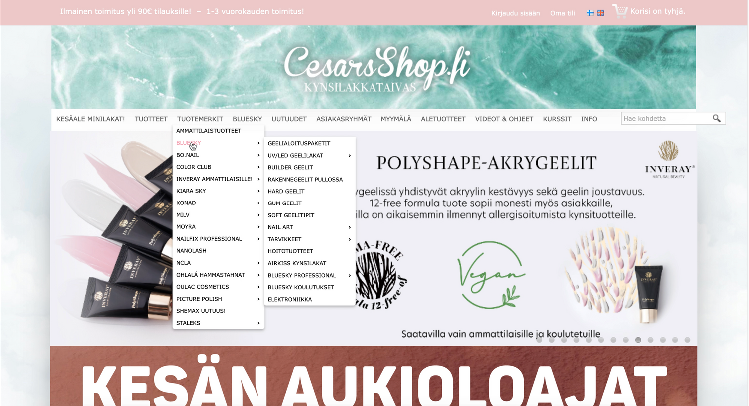 CesarsShop on suomalainen kynsiin erikoistunut kauppa, joka maahantuo uusimmat trendit ja luottotuotteet, joilla luot kestävät ja kauniit lakkaukset kynsiin.
