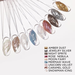 Hienojakoista glitteriä sisältävät Jewel Paste Gelit kimmeltävät auringossa, joten jokainen lakkaus on varmasti taianomainen!