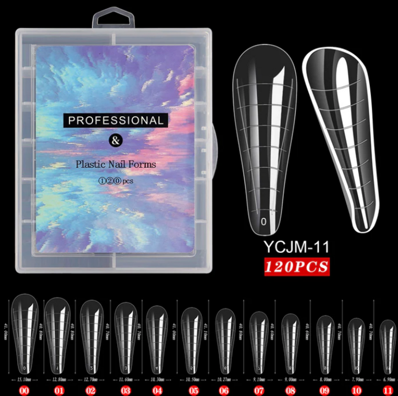 Dual Form tekee rakennekynsien tekemisestä akrygeelillä helpompaa ja nopeampaa! Laatikot sisältävät Dual Formeja 12:ssa eri koossa.