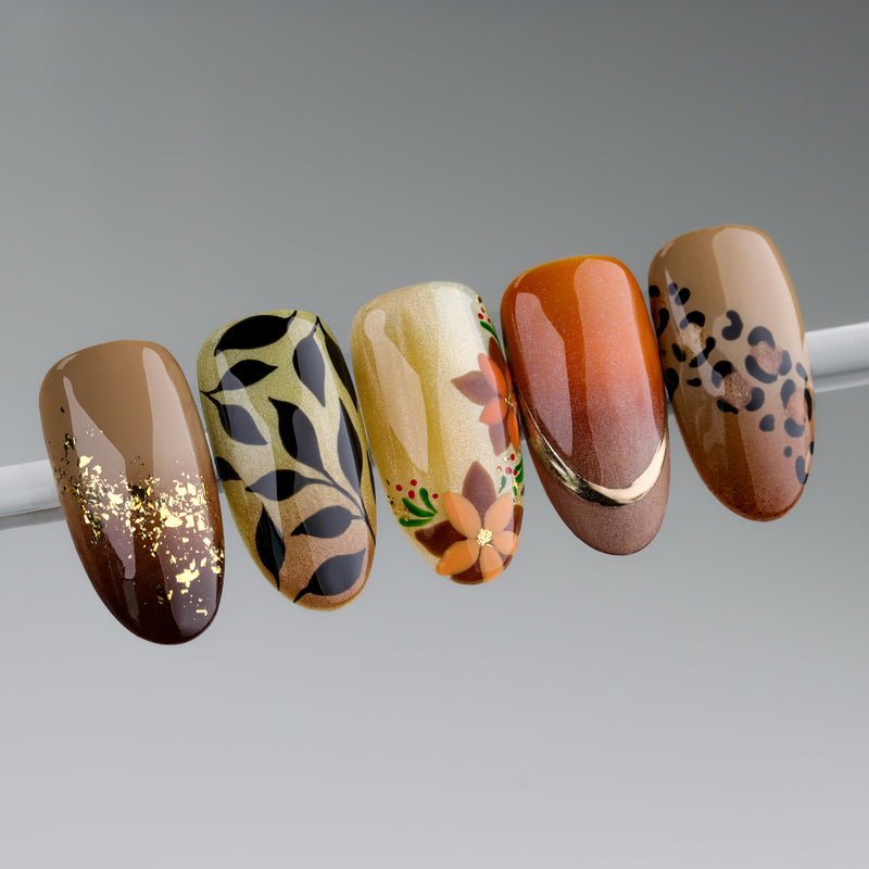 Nail art-koulutus, jossa näytän sinulle miten tehdään 5 trendikästä syyskoristelua eri tekniikoita käyttäen. Koulutuksessa maalaat ne ohjauksellani. Kurssi sopii kaikille (taso 1, helppo).